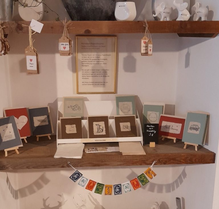 Wunderschöne Karten gebastelt mit handgemachtem Papier aus Nepal. Der Erlös geht an ein kleines privates Unterstützerprojekt, wo sich persönlich gekümmert wird, dass das Geld auch dort ankommt wo es gebraucht wird.