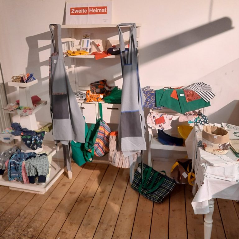 Generationenübergreifend nähen Flüchtlingsfrauen die nach 1945 zu uns gekommen sind mit den aktuellen jungen Frauen aus Syrien und der Ukraine. Die Stoffe werden bei Haushaltsauflösungen zusammengeholt und es entsteht etwas Neues daraus. Nachhaltig, generationenübergreifend, einfach wunderbar und unterstützenswert!